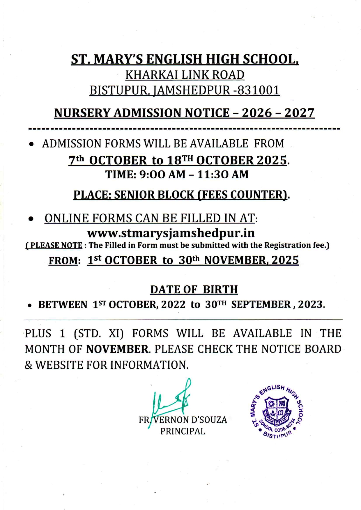 KHARKAI LINK ROAD, BISTUPUR, JAMSHEDPUR-1(Affiliated to the Central Board of Secondary Education, Delhi)Affiliation No. 3430057 School No. 66254APPLICATION FOR NURSERY (2026-2027) |